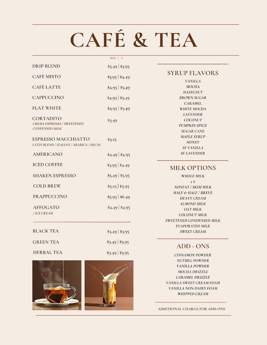 - Morning Delights: Start your day with a choice of scrumptious croissants, like Nutella or Dulce De Leche, and hearty breakfast toasts from Avocado Toast to Buttered Croissant.